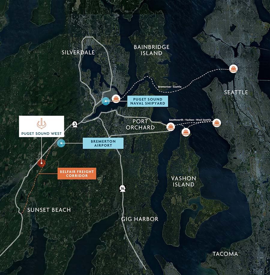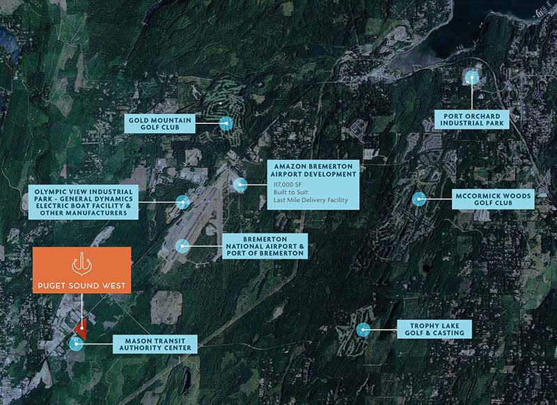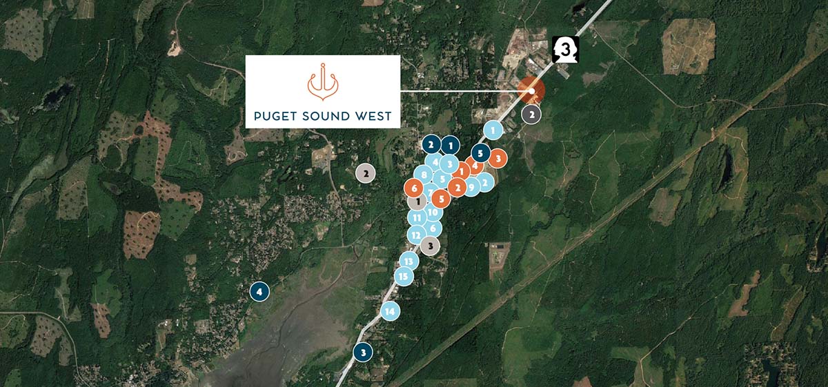 Puget Sound West is the newest project in the neighborhood, pioneering the industrial market in Belfair, Washington. Consisting of Class A industrial product, it offers up to 1,400,000 SF with the latest features in design as well as build to suit opportunities. Puget Sound West is located at the county line between Mason and Kitsap Counties at the north end of the State Route 3 Freight Corridor. As the Puget Sound region grows, Mason and Kitsap County are poised to accommodate industrial growth with a strong work force, local business incentives and a great quality of life.